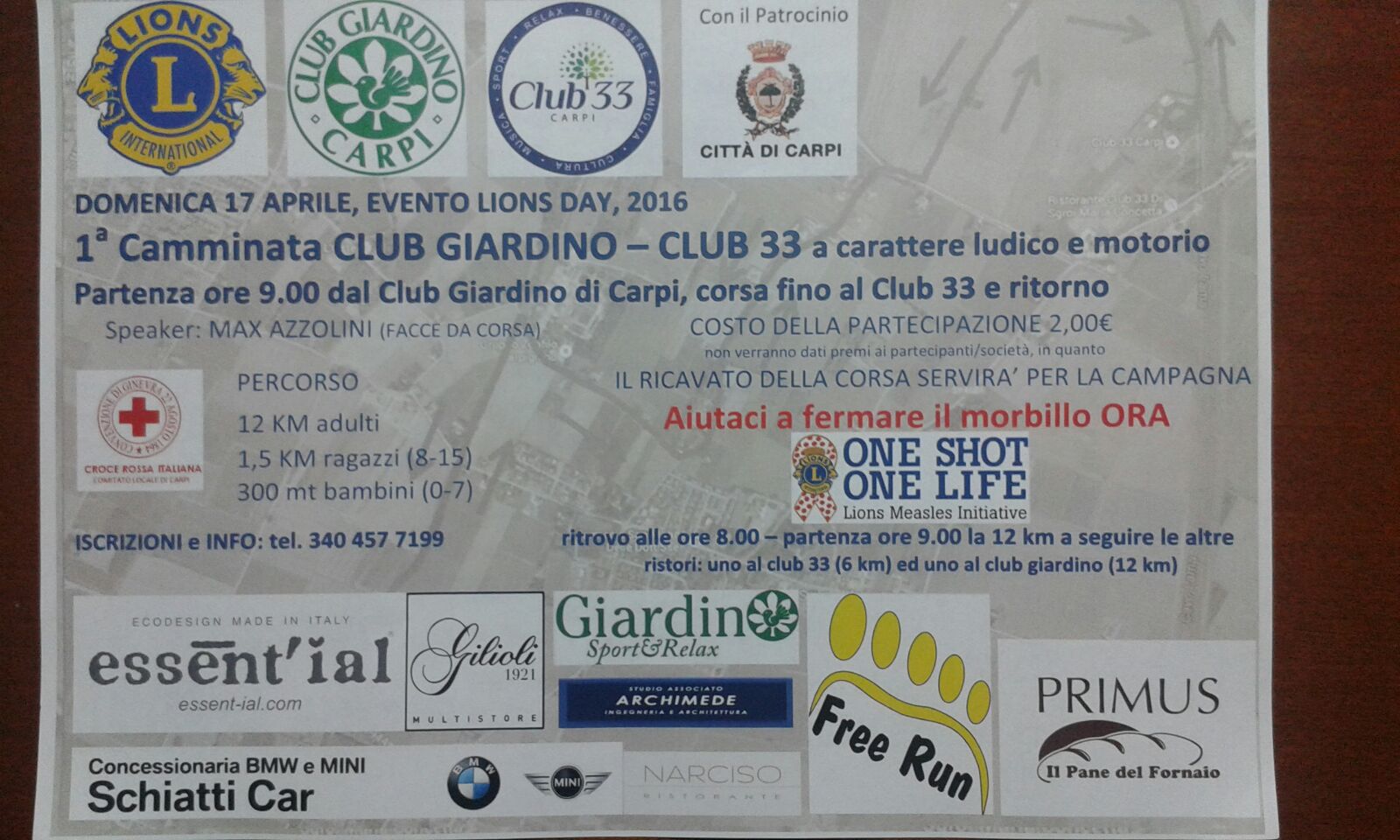 Partenza ore 9.00 dal Club Giardini di Carpi, il ricavato della corsa servir? per finanziare la campagna AIUTACI A FERMARE IL MORBILLO ORA