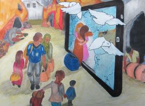 Tra le otto opere inviate al nostro distretto il seguente poster elaborato dalla studentessa Sophie Fantini delle scuole medie Margherita Hack di Carpi, è risultato primo assoluto tra tutti quelli visionati dall’apposito comitato distrettuale ed ha proseguito il suo viaggio verso l’O.N.U.